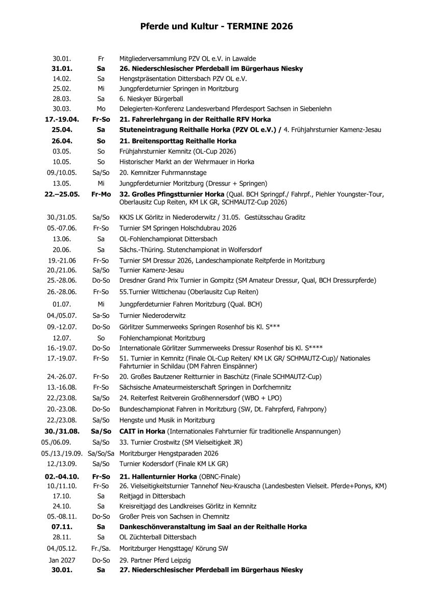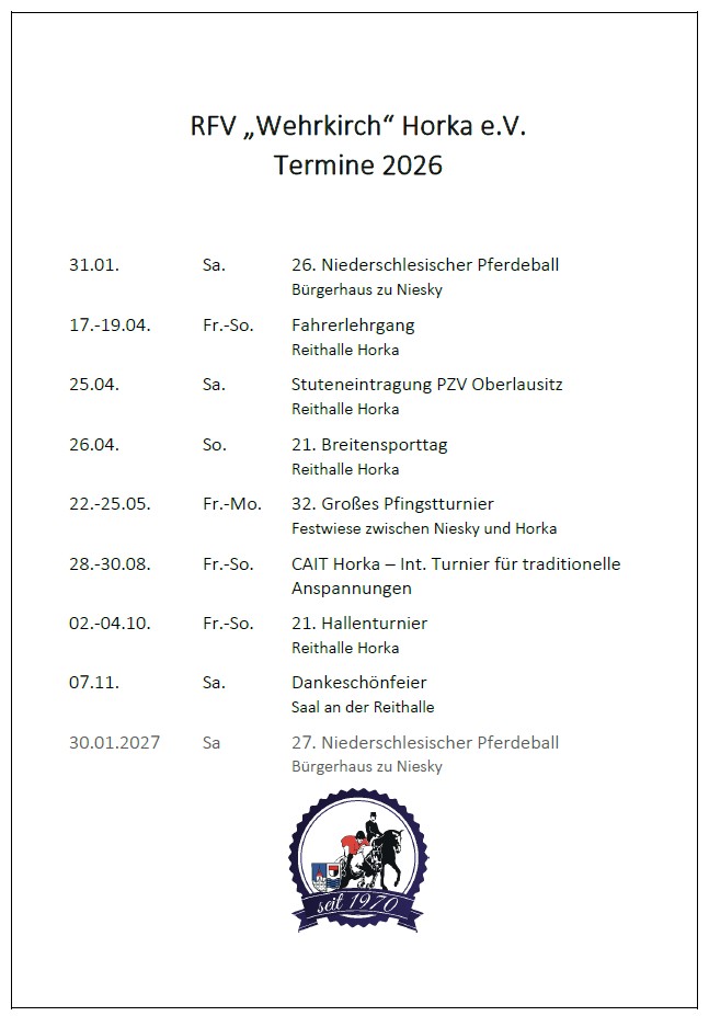 Beim RFV "Wehrkirch" Horka e.V. ist immer etwas los - auch 2026 ist unser Terminkalender gut gefüllt.